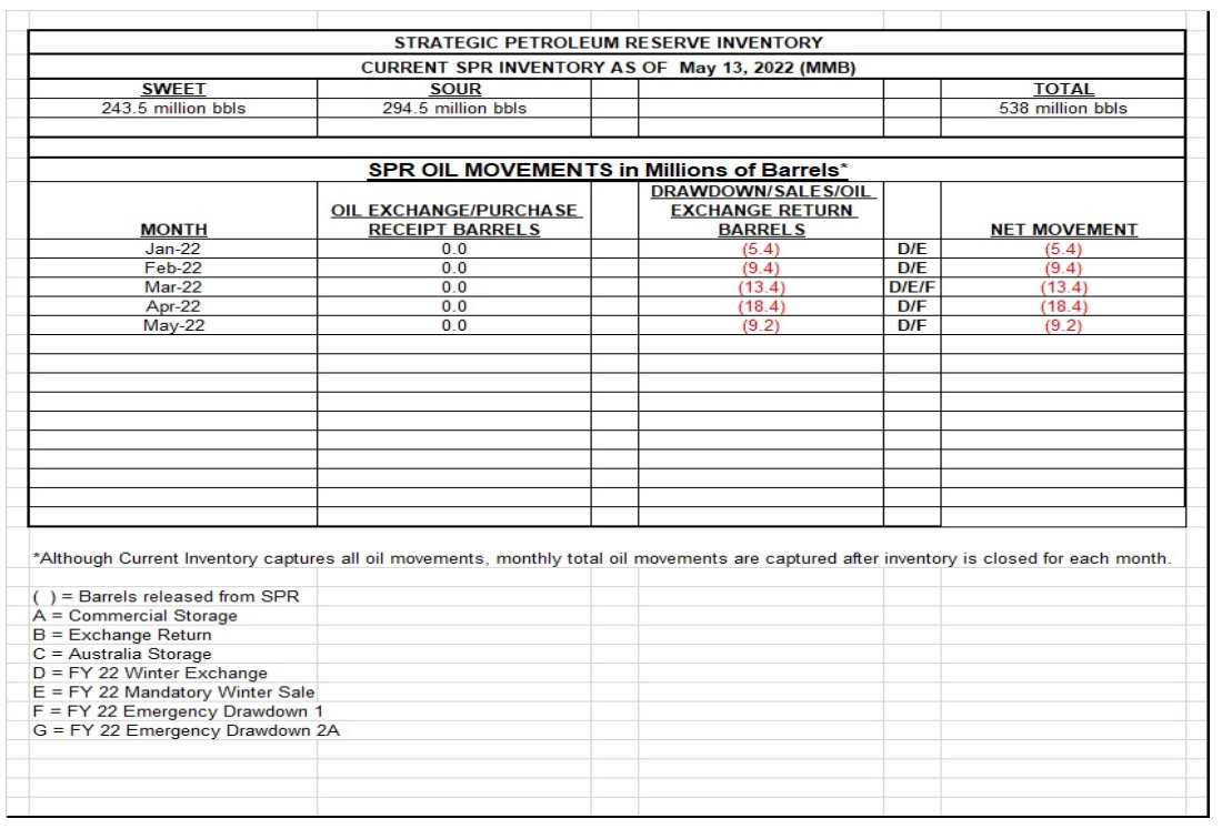 US SPR crude inventories fell by ~5.0mb w/w to 538.0mb last week.