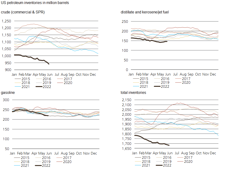 2022 (* WTI Front month contract ** WTI Spot rate, No colour = final/BTE actual)